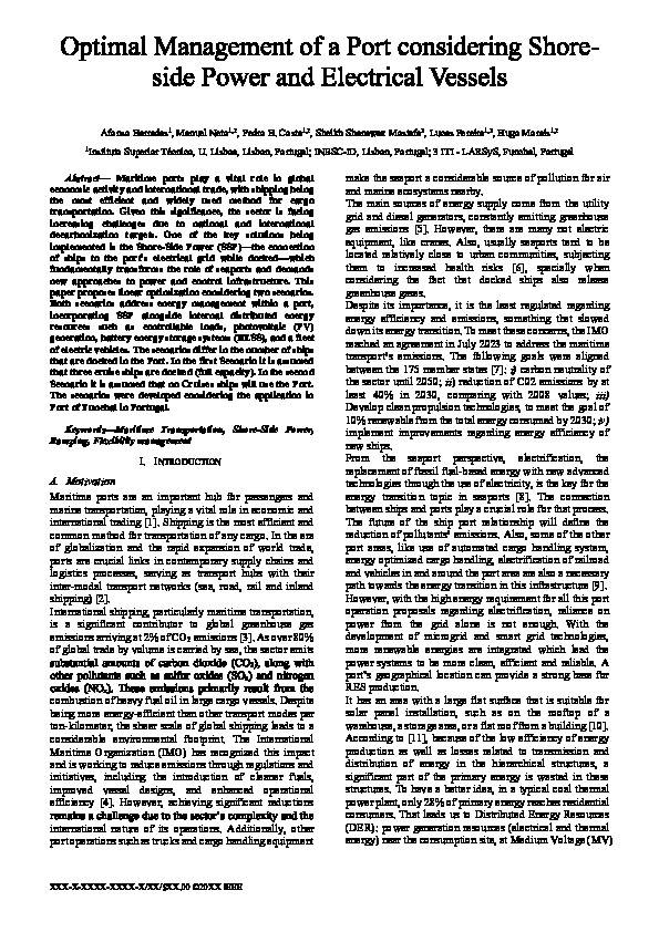 Optimal Management of a Port considering Shore-side Power and Electrical Vessels
